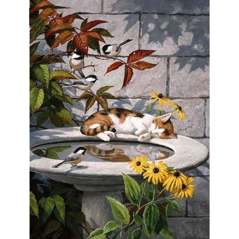 Sleeping Cat & Birds