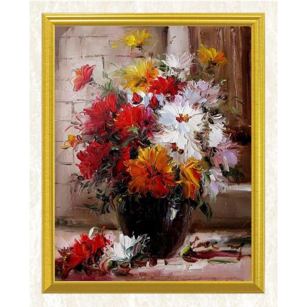 Red, Yellow & White Flowers in a Vase